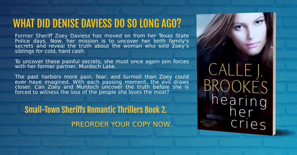 My current main project is Zoey’s book, Hearing her Cries. She’s Small-Town Sheriffs book 2! I have been waiting since 2018 to get to her book (I was working on hers when I fell, actually). However, the technology her storyline was based on is as of 2021..now scientifically obsolete.